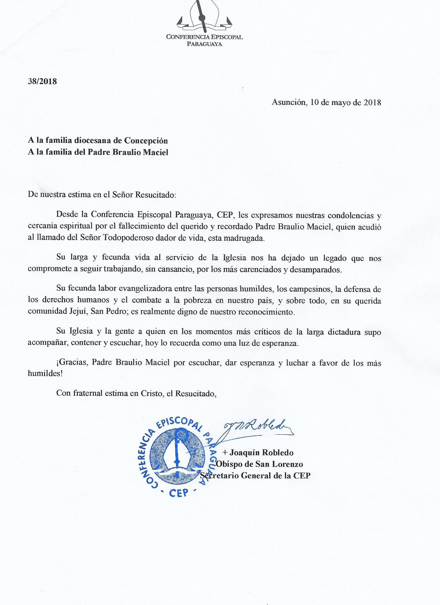 - «Que la paz y el consuelo divino estén con usted y su familia durante este tiempo de duelo.»