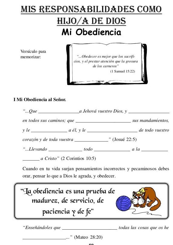 - La obediencia a los padres: Destacar la importancia de obedecer a los padres como un reflejo de la obediencia a Dios.