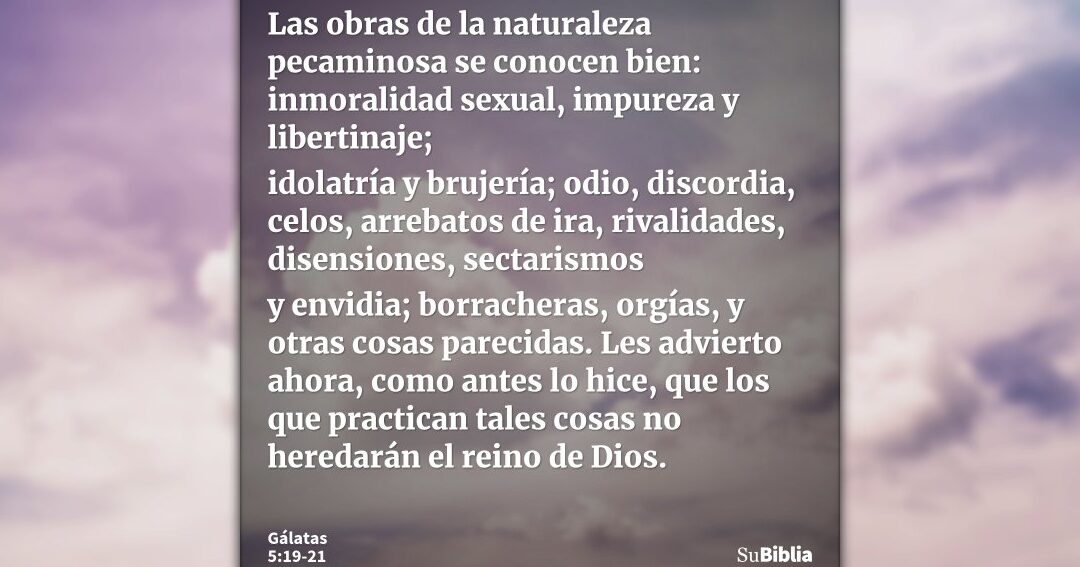 El pasaje específico que abordaremos es Gálatas 5, 19-21. En este texto, el apóstol Pablo nos advierte sobre las obras de la carne, que son aquellas acciones y actitudes que van en contra de los principios y valores enseñados por Jesús.