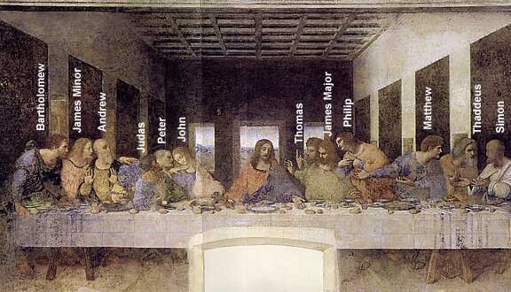 Según la tradición cristiana, los apóstoles se sentaban en el siguiente orden alrededor de Jesús: