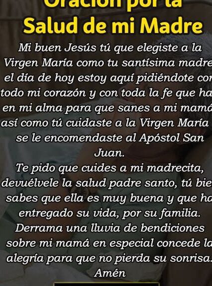 La salud de nuestra madre es un tesoro invaluable que debemos cuidar y proteger. En momentos de dificultad, es natural buscar una guía espiritual y encontrar consuelo en nuestras creencias. Una oración puede ser una poderosa herramienta para canalizar nuestras preocupaciones y enviar energías positivas hacia la salud de nuestra amada madre. En este artículo, exploraremos una oración especial diseñada para pedir por la salud de nuestra madre, invocando la protección divina y la sanación. Acompáñanos en este viaje espiritual mientras nos sumergimos en la fuerza de la fe y el poder de la oración.