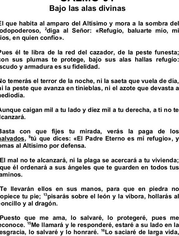 El Salmo 91 es una poderosa oración de protección espiritual que ha brindado consuelo y fortaleza a innumerables personas a lo largo de los siglos. En momentos difíciles, cuando nos enfrentamos a desafíos y adversidades, recurrir a esta oración puede ser una fuente de esperanza y seguridad.