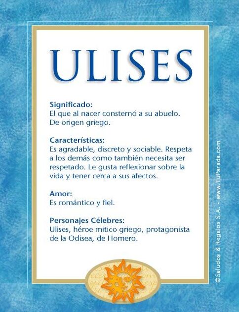El nombre «Ulises» tiene un origen griego y se asocia comúnmente con el personaje homérico de la Odisea. Ulises, también conocido como Odiseo, era un héroe griego que emprendió un largo viaje de regreso a su hogar después de la Guerra de Troya. Durante su travesía, Ulises enfrentó numerosos desafíos y pruebas.